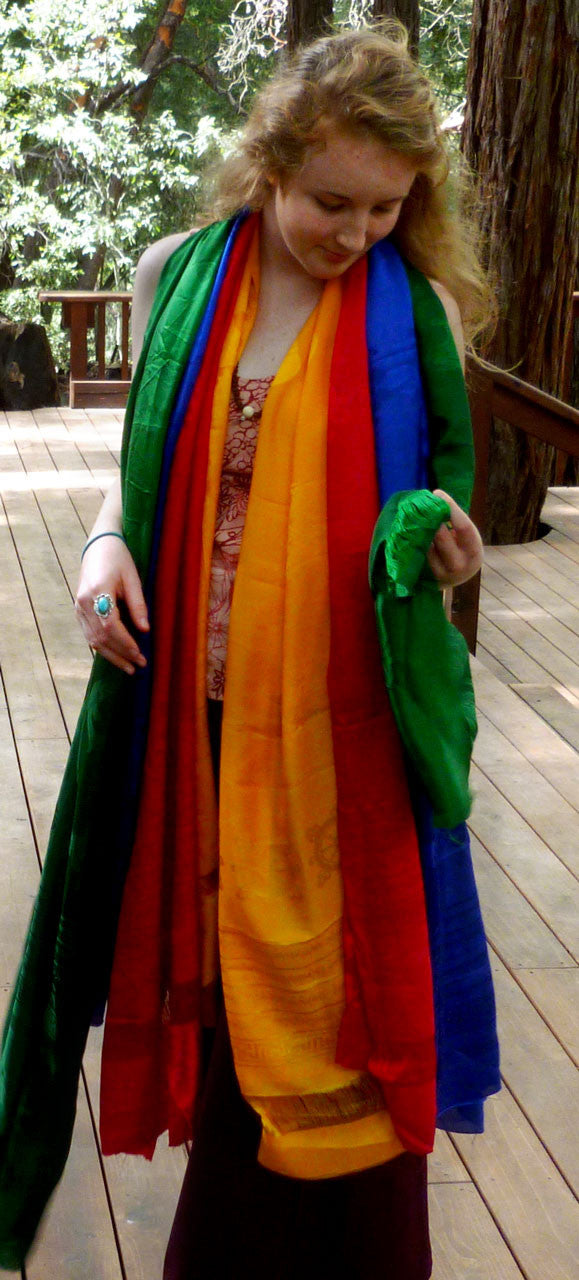 Individual colored extra large khatas in blue, red, yellow, or green. Each khata is approximately 8 feet, 3.5 inches long and 1 foot, 9.5 inches wide (99"x21.5")