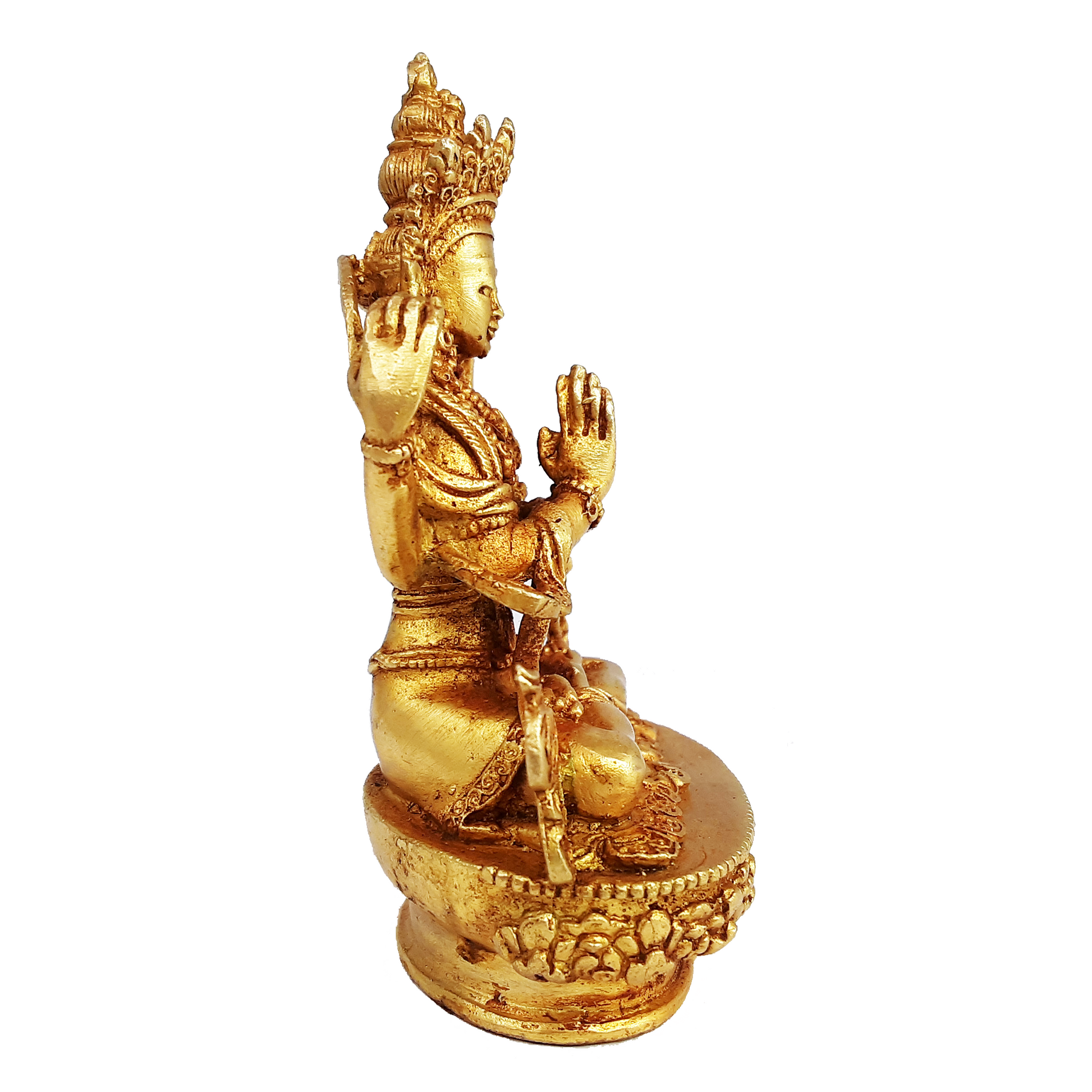 Beautiful gold plated statue of Chenrezig measuring 3.5 inches tall.