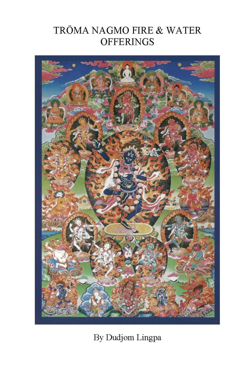 Troma Nagmo Fire Offerings by Dudjom Lingpa; contains 4 practices: Spontaneously Accomplished Buddha Activity, Fire Offering of the Dakini Troma Nagmo (Me-chod); The Flames of the Primordial Wisdom Fire that Purifies Contamination (Nol-sang); The Billowing Clouds of the Nectar of Purified Defilements (Drib-sang); and The Burnt Offering of All-Pervasive Sense Pleasures (Sur-chod)
