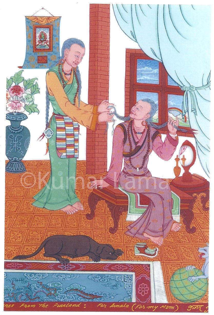 These beautiful card prints depict images of Tibetan life in a traditional Tibetan art style, from the artist Kumar Lama.
