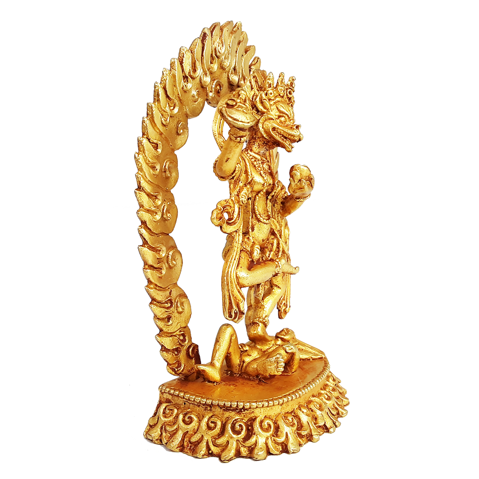 Beautiful gold plated statue of Lion-Faced Dakini measuring 3.75 inches tall.