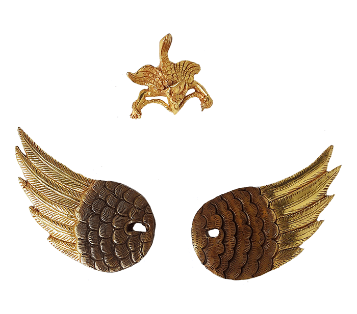 This statue can be opened for consecration. Also, it comes with wings that can be attached to the back, for customization, as well as a gold-plated garuda that hangs from the highest flame-tip by its feet.