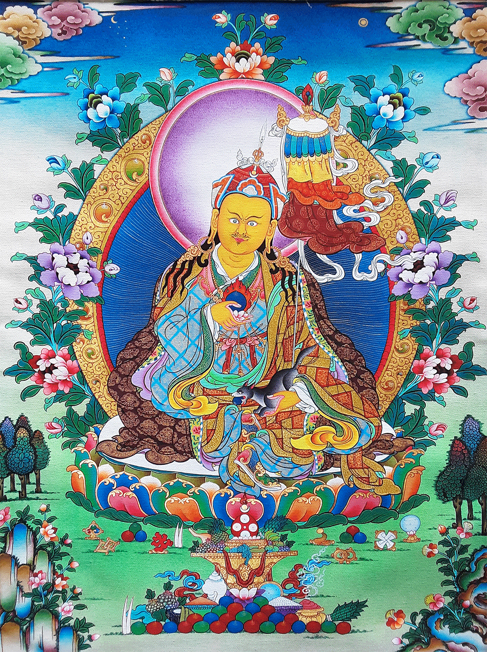 This is a high quality print thangka from Nepal. Print thangkas are not hand painted. However, they are reproductions from original paintings.