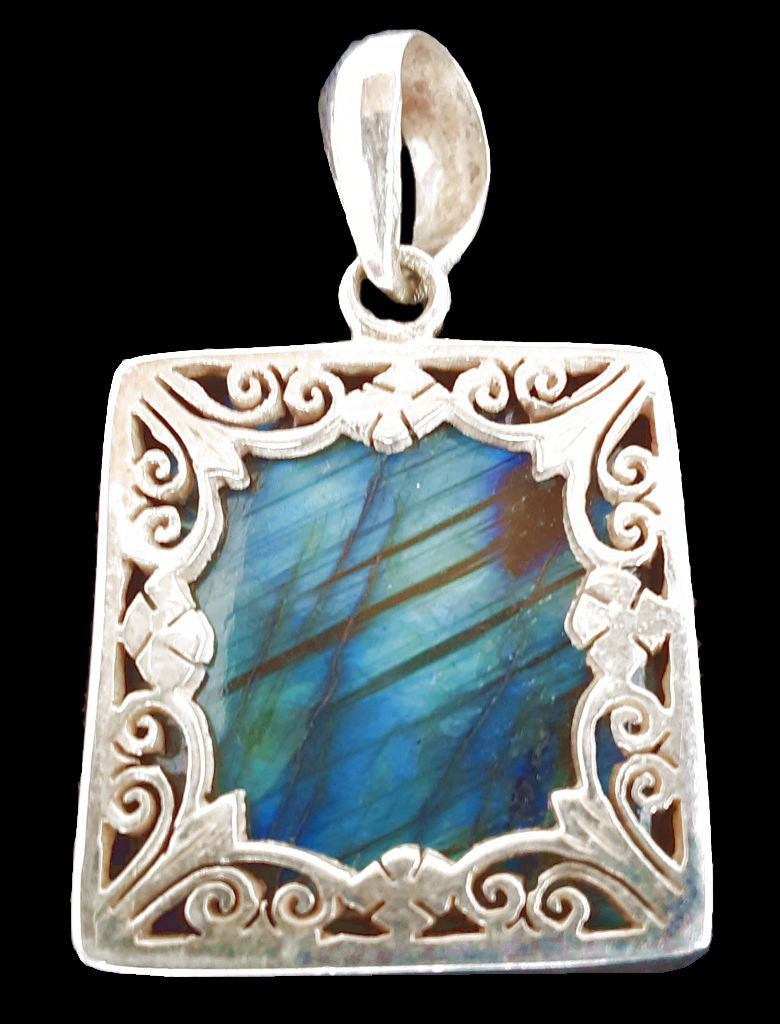 Beautiful labradorite pendant. Belonging to the feldspar mineral family, Labradorite is known for it's iridescent color-changing properties ranging from earthen grey to blue and green. This stone, also known as spectrolite, has long been cherished as a protective stone, said to harmonize both external and internal imbalances.