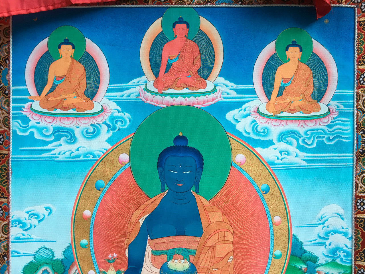 The practice of Medicine Buddha (Sangye Menla), the Supreme Healer, is not only a very powerful method for healing and increasing healing powers both for oneself and others, but also for overcoming the inner sicknesses of attachment, hatred, and ignorance. Thus, to meditate on the Medicine Buddha can help decrease physical and mental illness and suffering. The Medicine Buddha mantra is held to be extremely powerful for healing of physical illnesses and purification of negative karma.