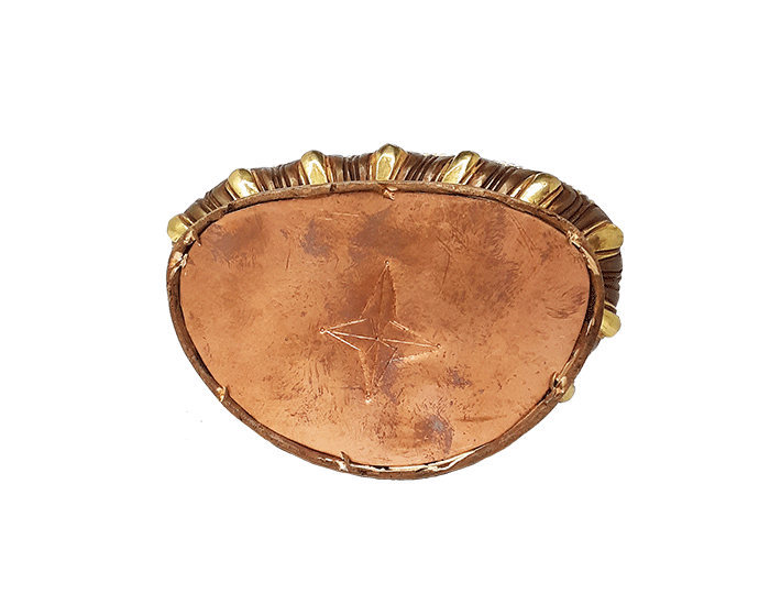 This fine copper statue was hand crafted in Nepal, half gold-plated, with gold- and mineral-painted face.