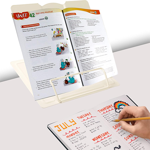 Folding metal text holder. Perfect for practice texts during retreat. Folds for easy transport.