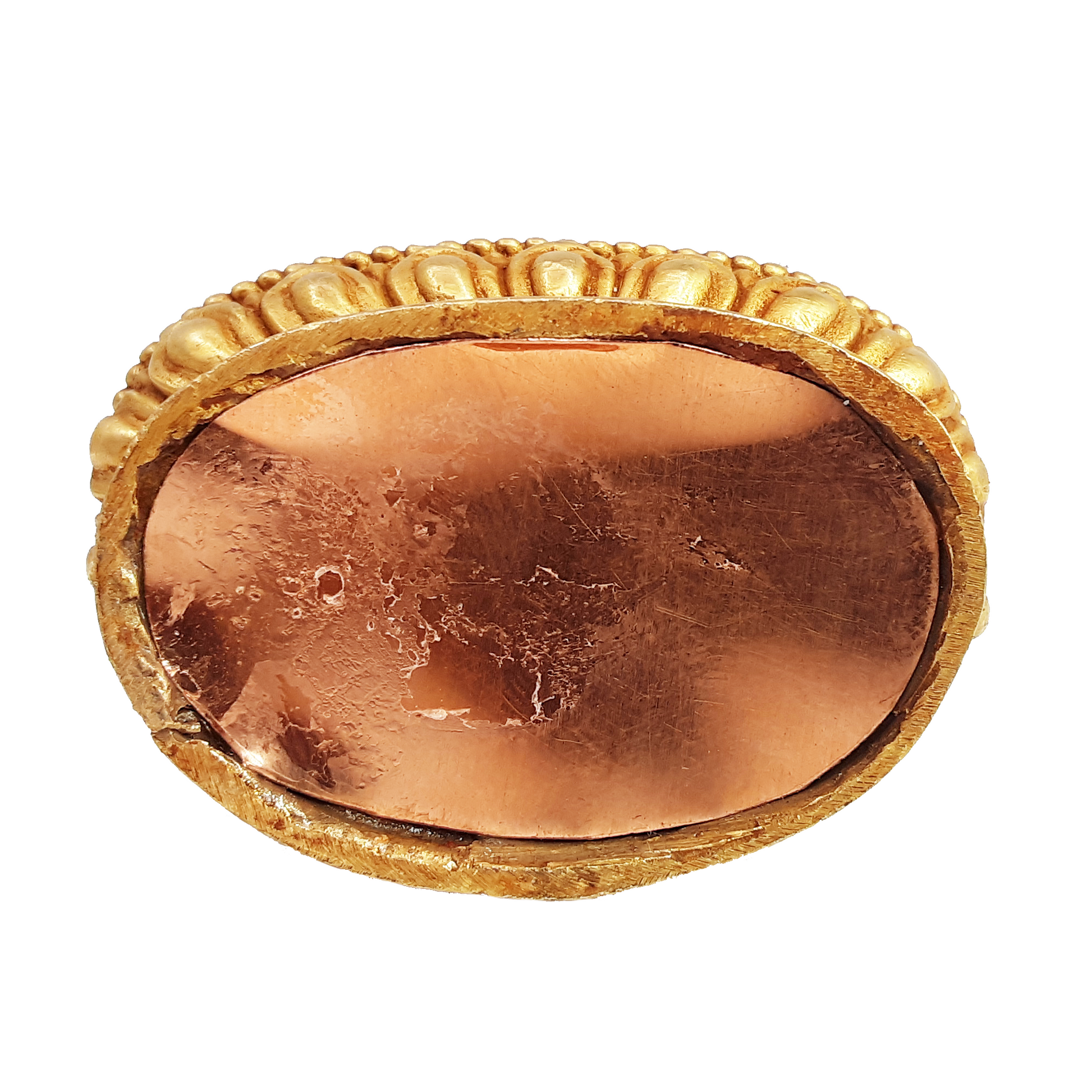 Beautiful gold plated Ratnasambhava statue measuring 3.25 inches tall.