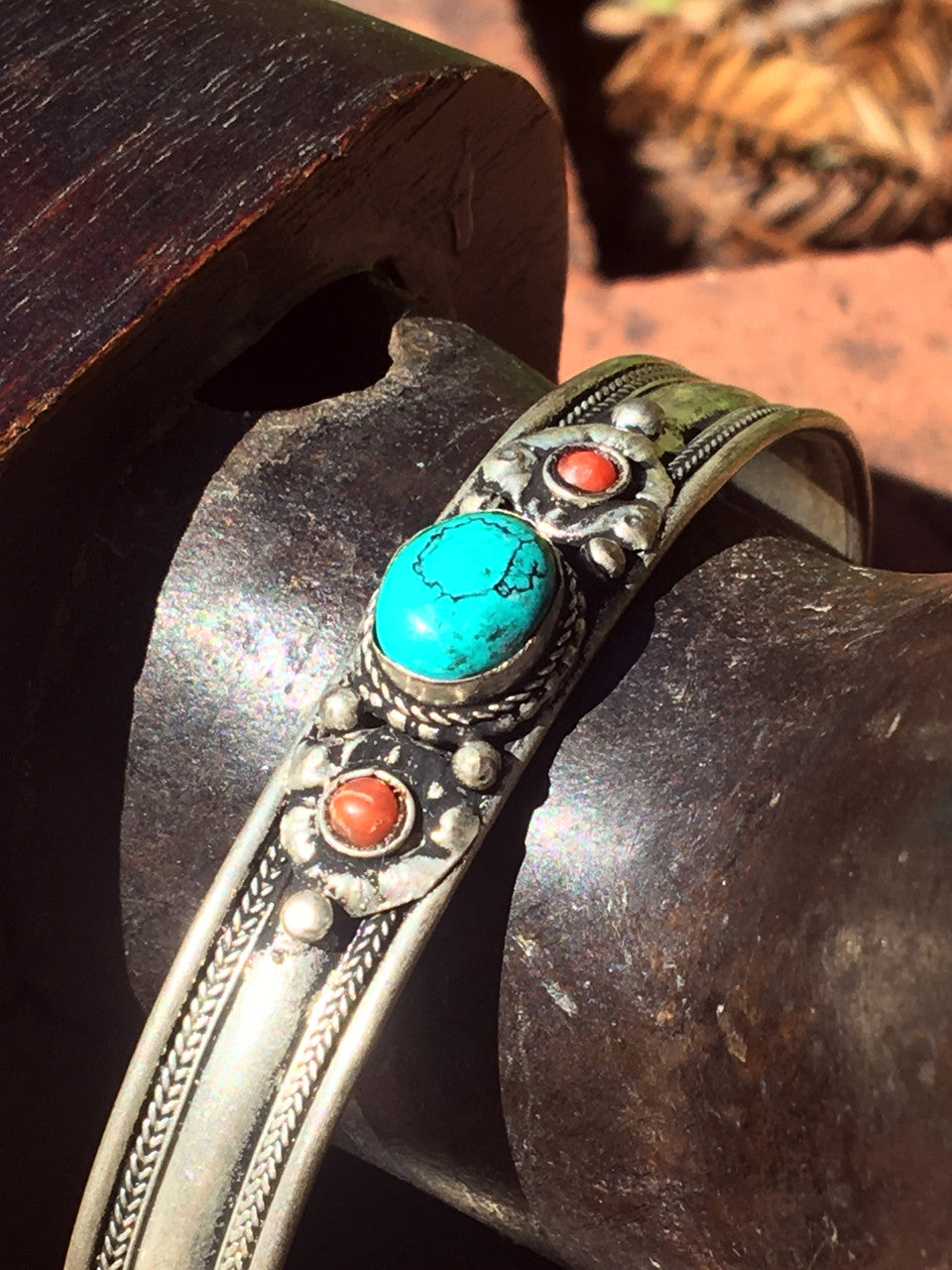 Turquoise is the sky stone. It's subtle shift from blue to green symbolizes the development of wisdom. These bracelets are eye-catching as a stand alone for everyday wear, or stacked for a statement look.