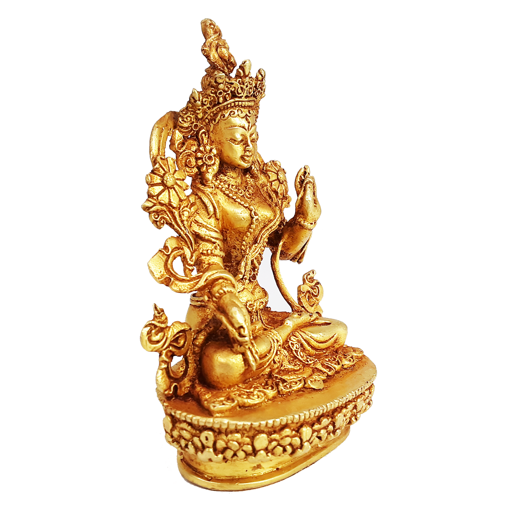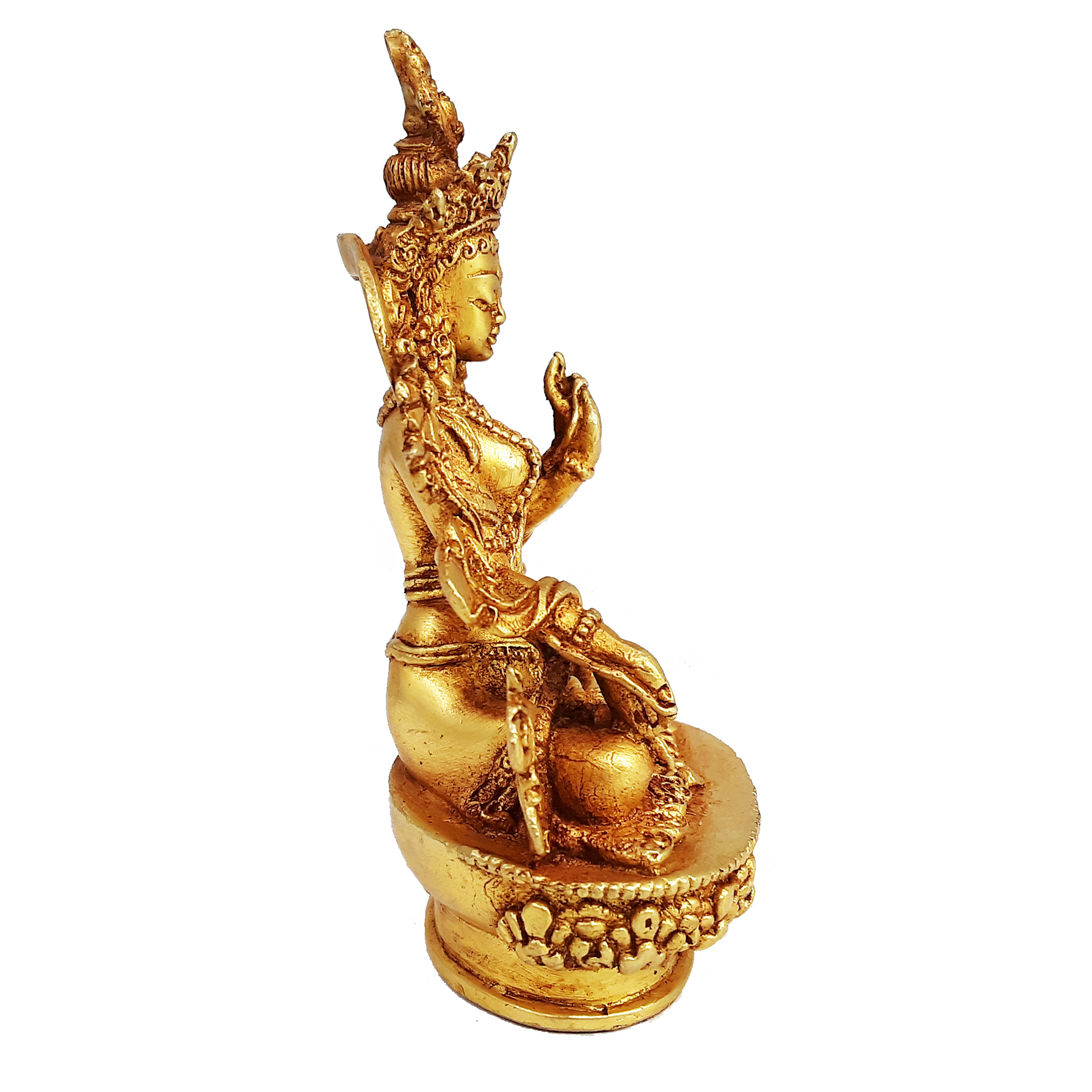 Beautiful gold gilded White Tara statue measuring 3.5 inches tall.