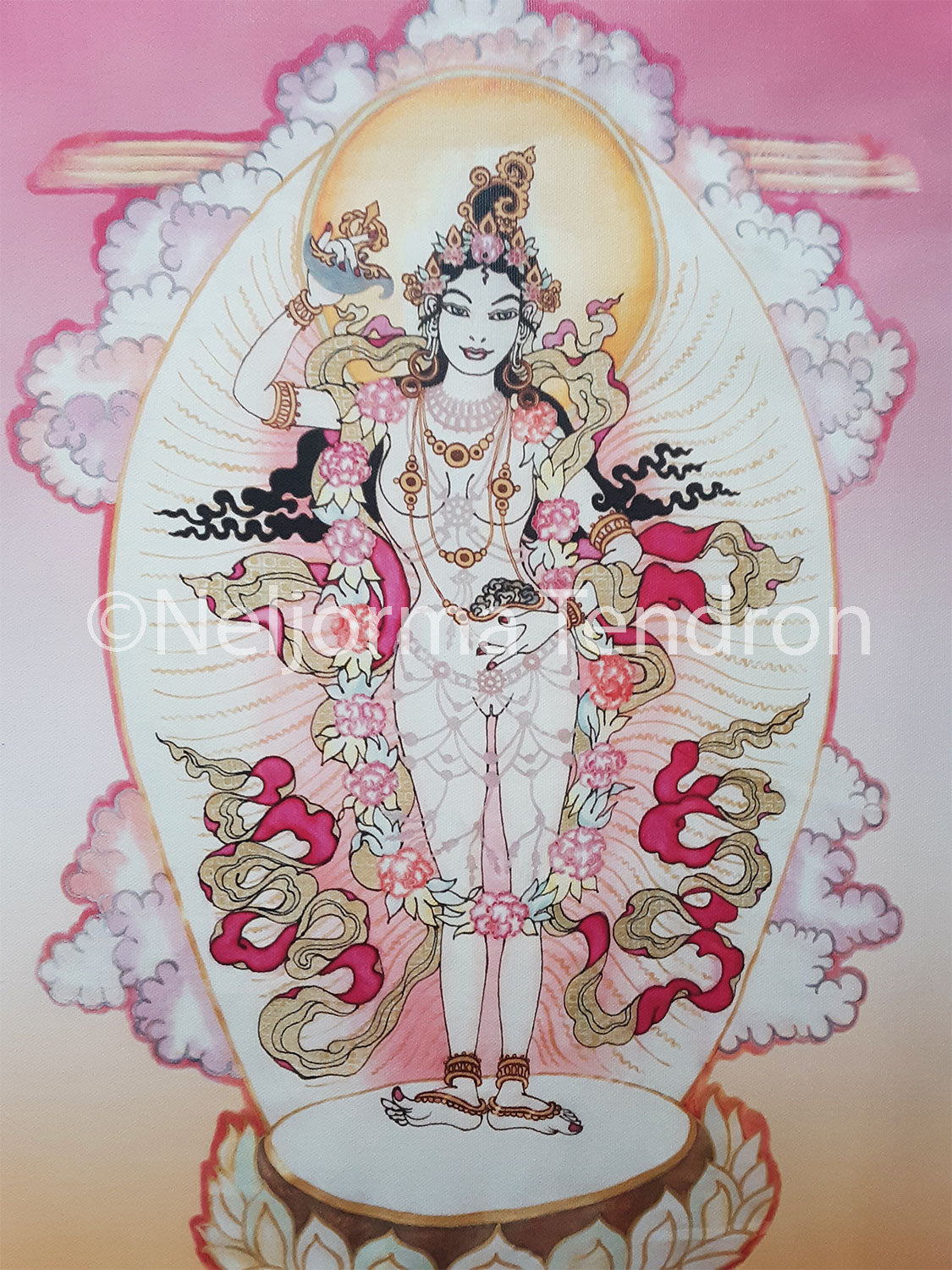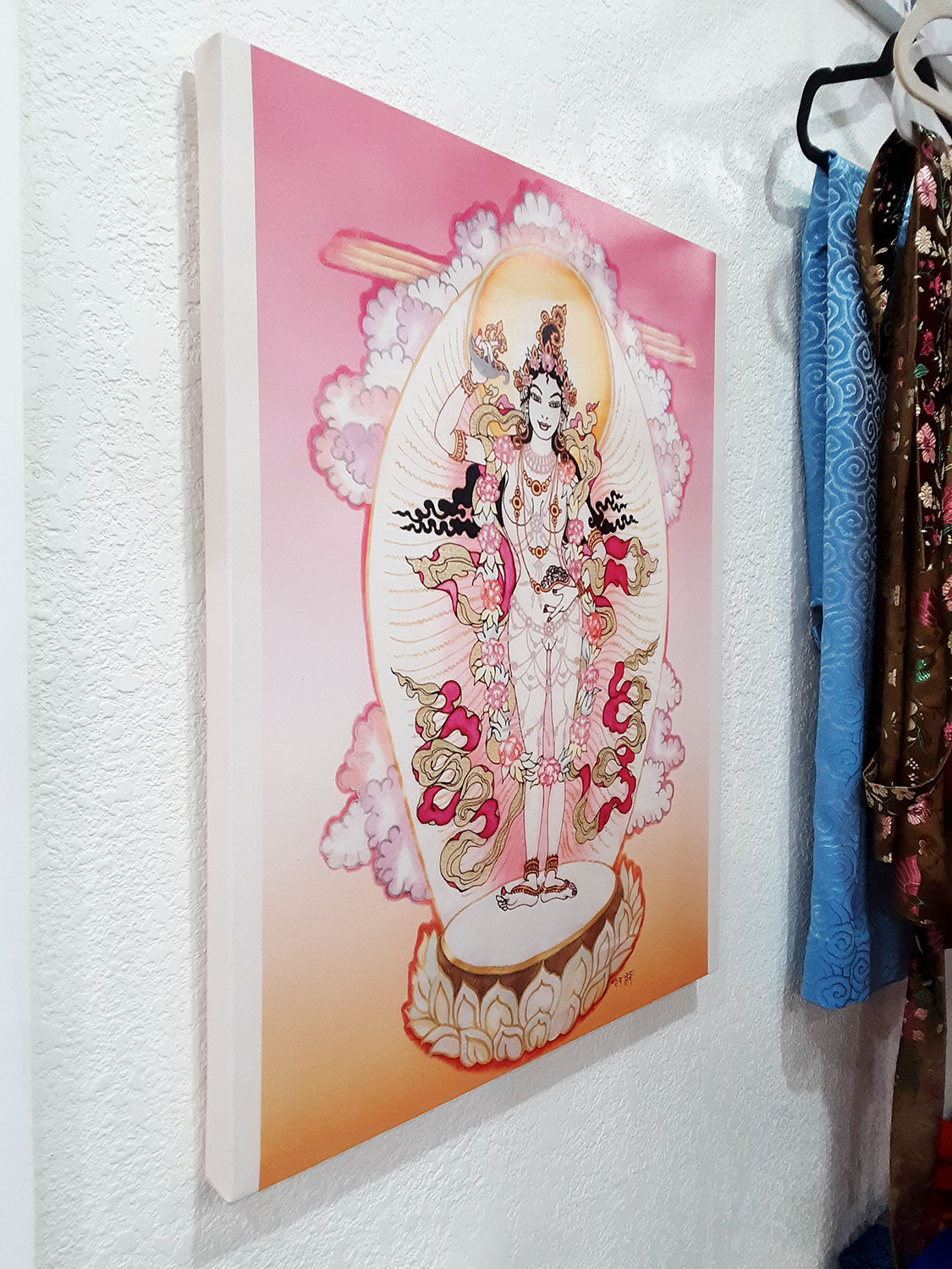 This beautiful canvas print is from a photo taken of an original silk painting by the artist Neljorma Tendron.
